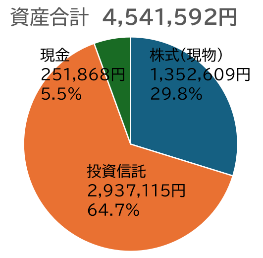 投資信託は4万円の積立と50万円の一括購入でその分だけ増えた感じですね。